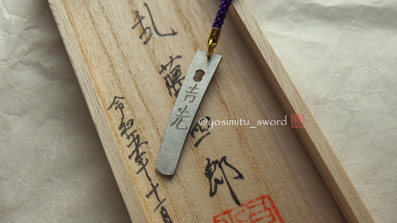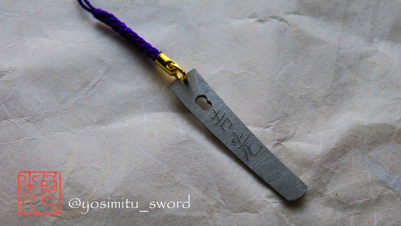 茎キーホルダーでは、反りづく姿に山城流の『切鑢』で仕立て、棟も同様に再現。